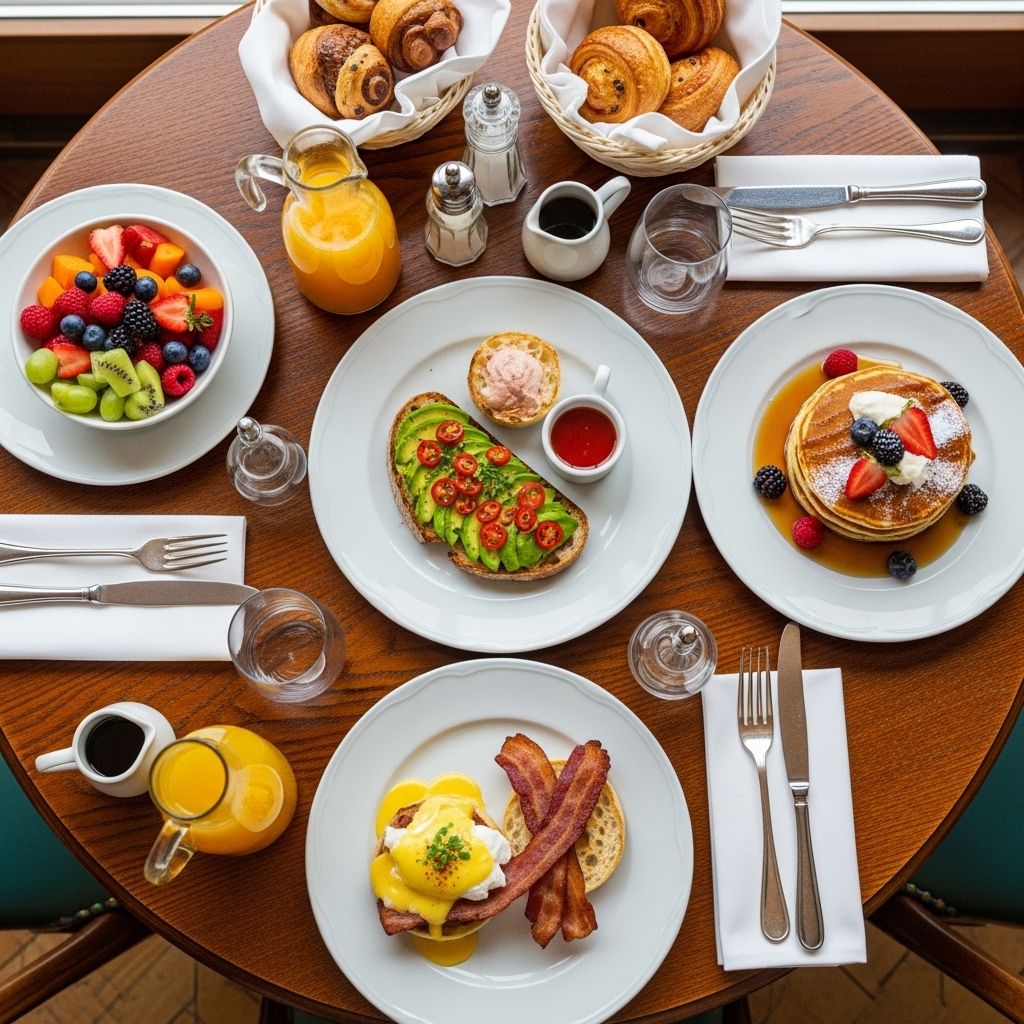 Pancakes: Indulge in a stack of fluffy pancakes, available in various flavors such as buttermilk, blueberry, or chocolate chip. Top them with whipped cream, fresh berries, and maple syrup for the ultimate treat.